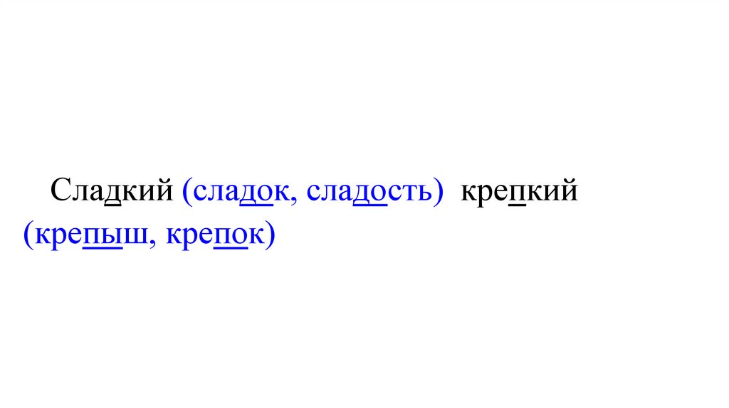 Сладкий (сладок, сладость) крепкий(крепыш, крепок)