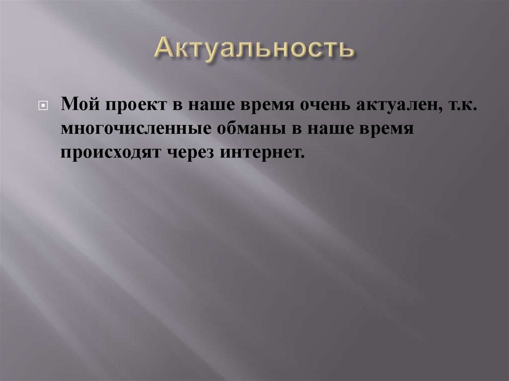 Мой проект в наше время очень актуален, т.к.многочисленные обманы в наше время