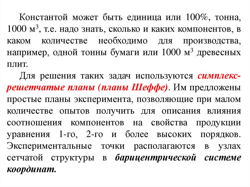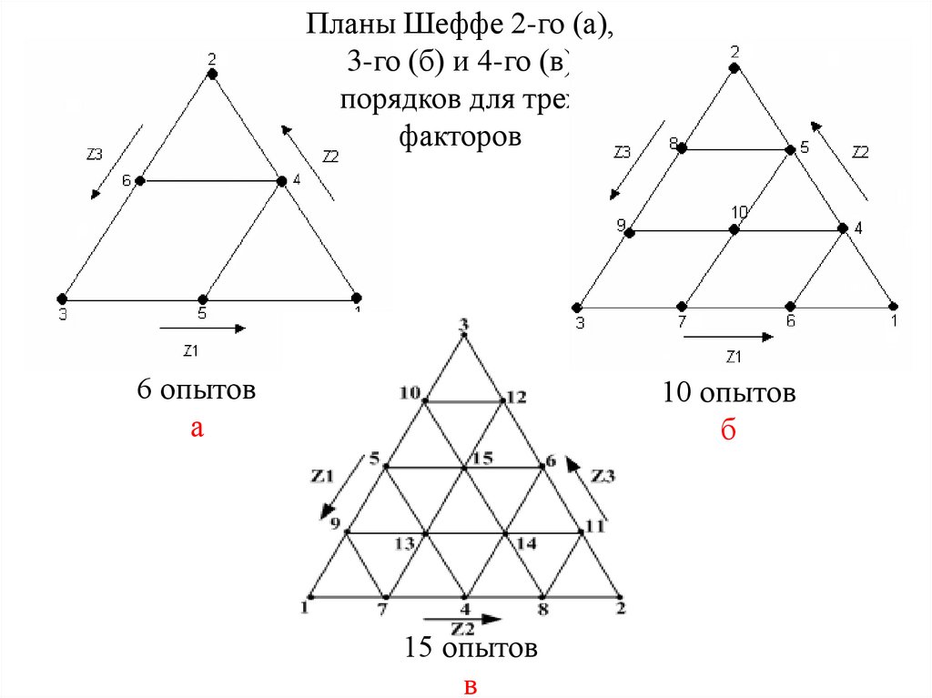 Для решения таких задач используются симплексрешетчатые планы (планы Шеффе). Им предложены