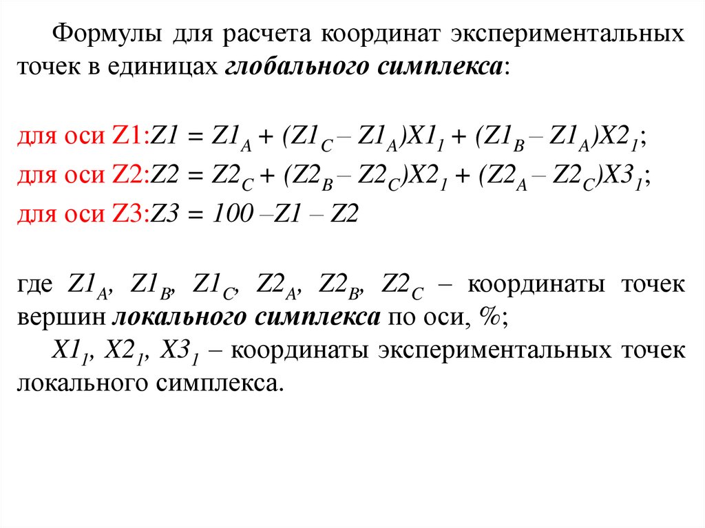 Формулы для расчета координат экспериментальныхточек в единицах глобального симплекса: