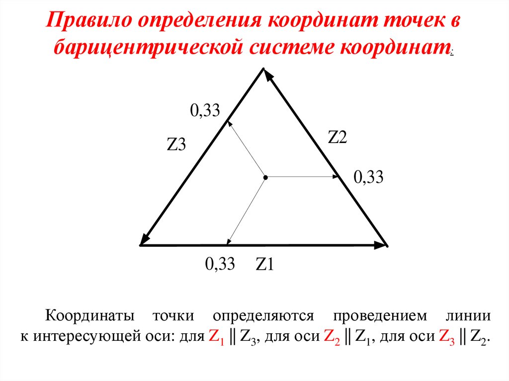 Правило определения координат точек вбарицентрической системе координат: