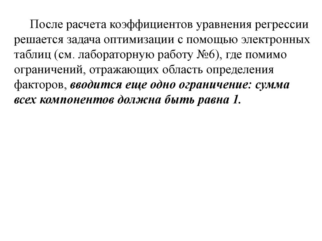 После расчета коэффициентов уравнения регрессиирешается задача оптимизации с помощью электронных