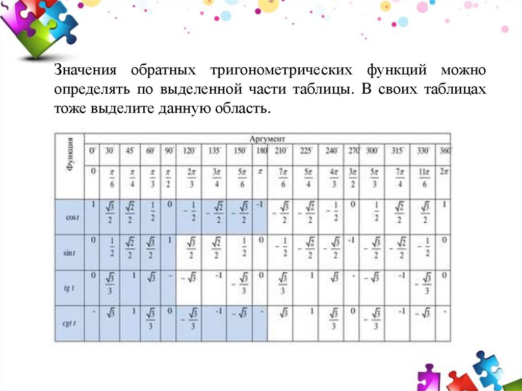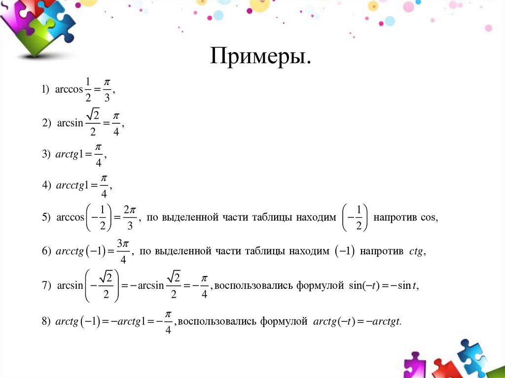 Обратные тригонометрические функции