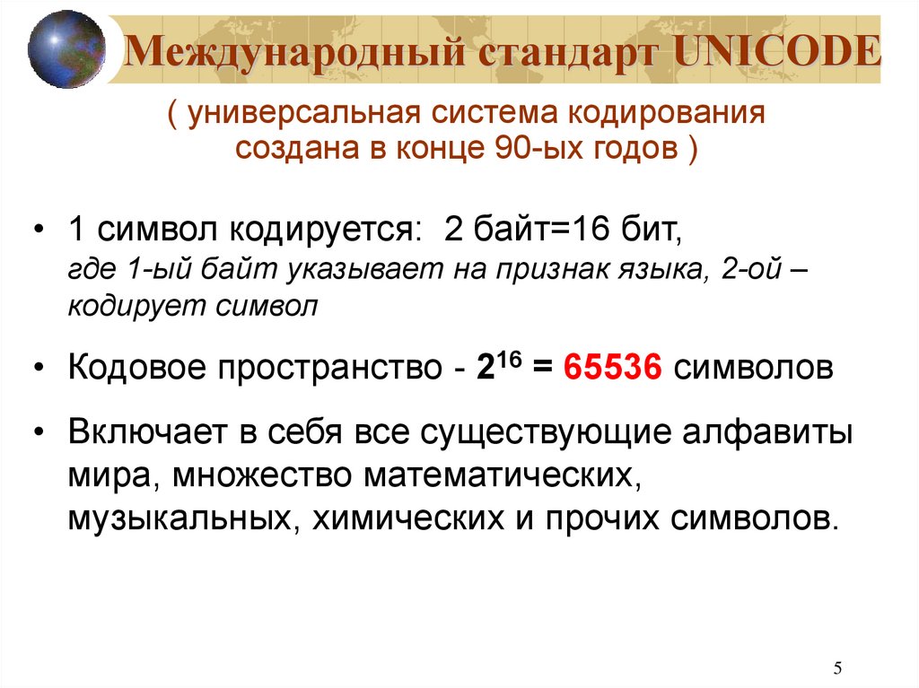 Международный стандарт UNICODЕ( универсальная система кодирования