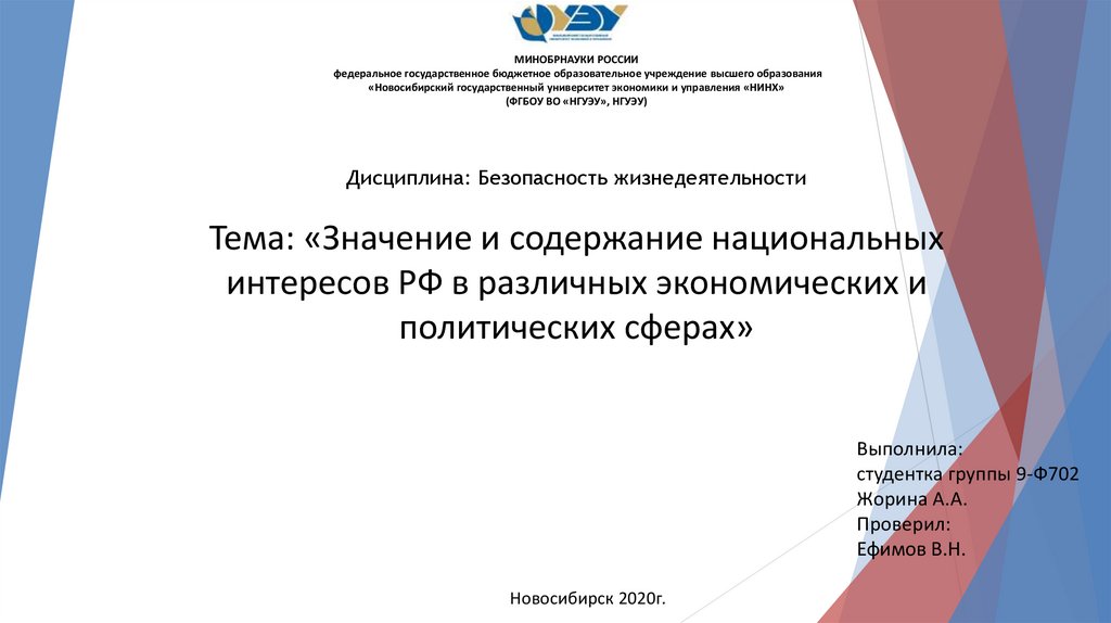 Значение и содержание национальных интересов РФ в различных экономических и политических сферах