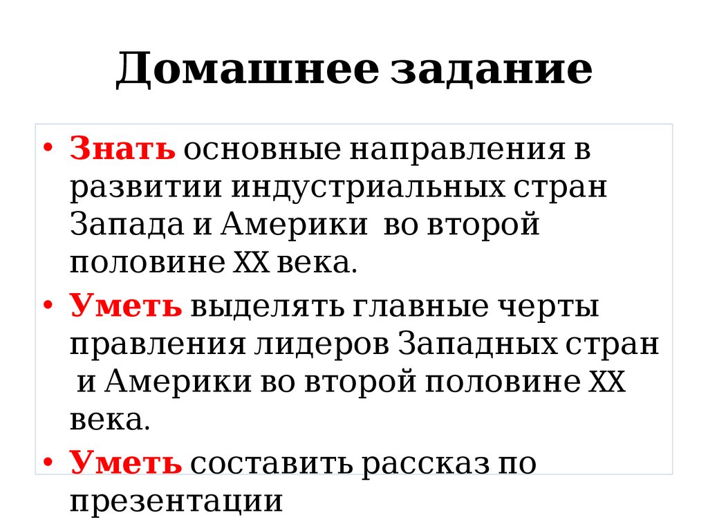 Развитые индустриальные страны Запада и Америки во второй половине ХХ века (1 часть)