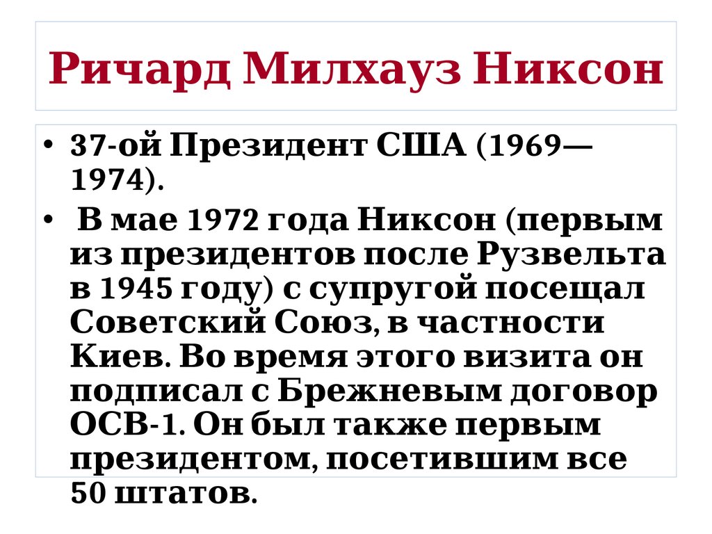 Рича:рд Милха:уз Н Гаррииксо н• 37-о й половине XX века Президент США (1969—