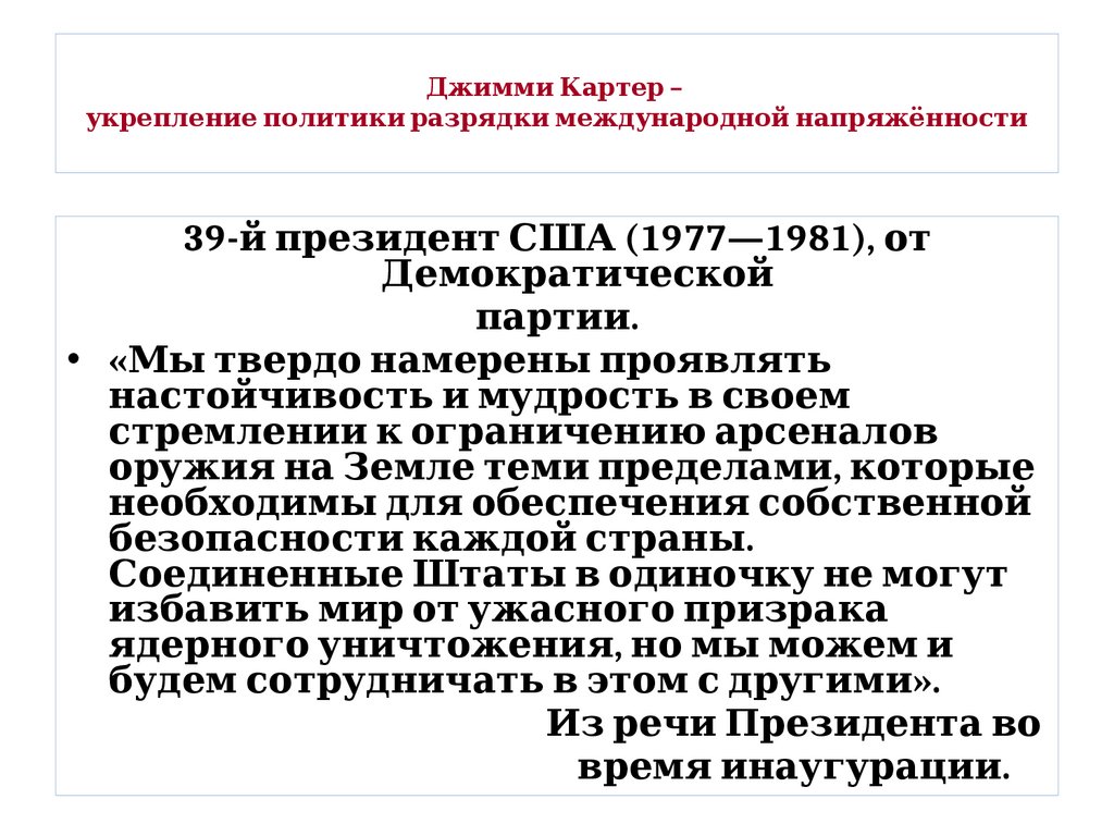 Джимми Ка:ртер –укрепление по литики ра:зрядки междуна:ро дно й половине XX века на:пряжённо сти