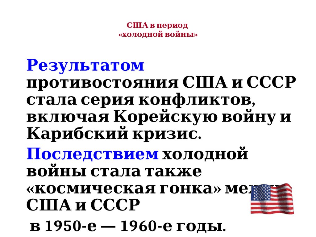 США в перио д«хо ло дно й половине XX века во й половине XX веканы»