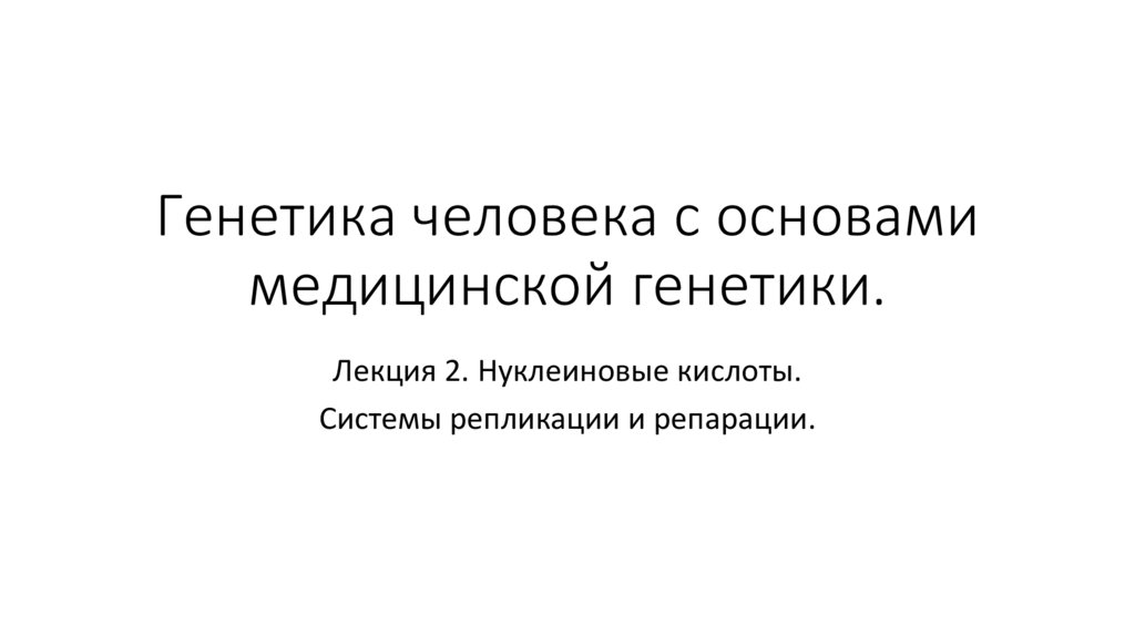 Нуклеиновые кислоты. Системы репликации и репарации. Лекция 2