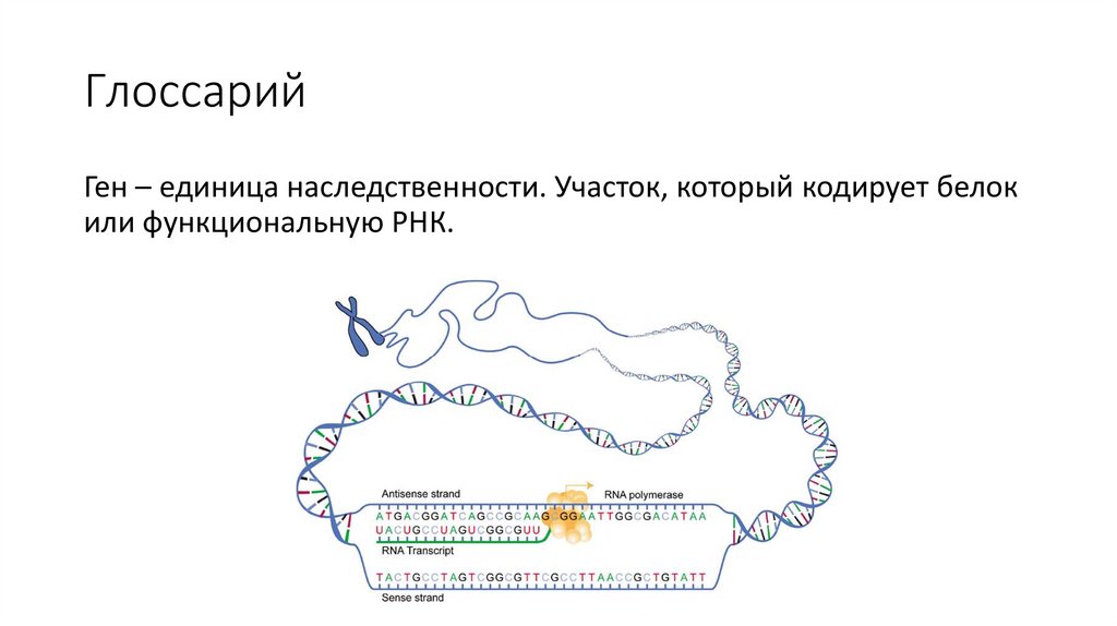 ГлоссарийГен – единица наследственности. Участок, который кодирует белок