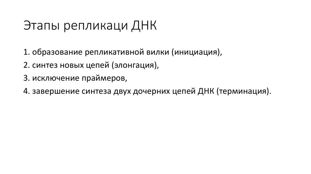 Этапы репликаци ДНК1. образование репликативной вилки (инициация),