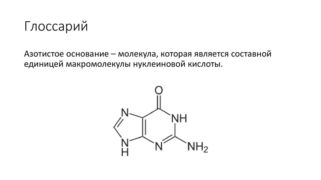 ГлоссарийАзотистое основание – молекула, которая является составной