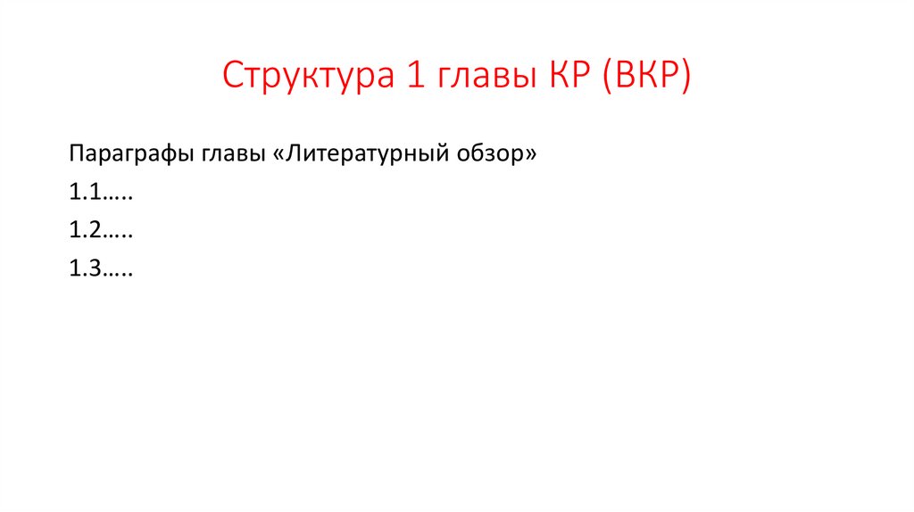 Структура 1 главы КР (ВКР)Параграфы главы «Литературный обзор»
