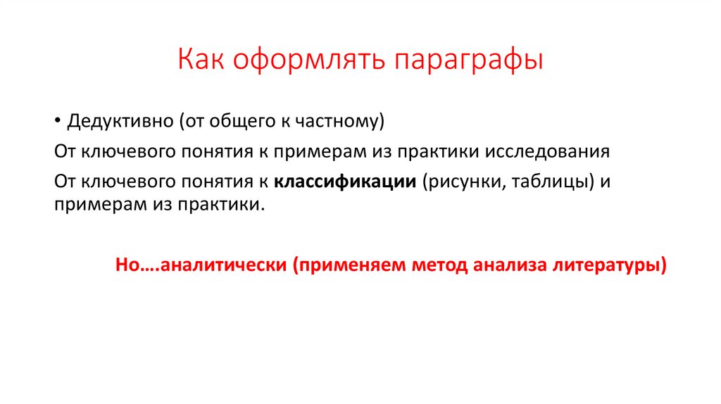 Как оформлять параграфы• Дедуктивно (от общего к частному)