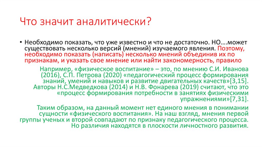 Что значит аналитически?• Необходимо показать, что уже известно и что не достаточно. НО….может