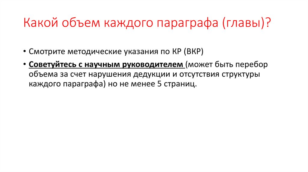 Какой объем каждого параграфа (главы)?• Смотрите методические указания по КР (ВКР)