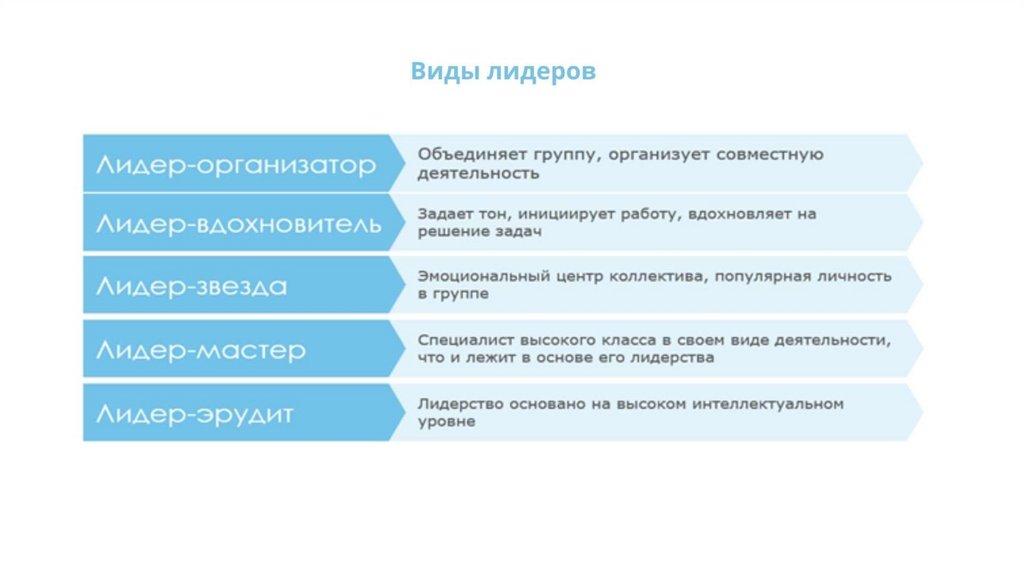 Лидерство и руководство. Типы лидерства. Лидерство и власть. Стили лидерства и руководства. Командообразование