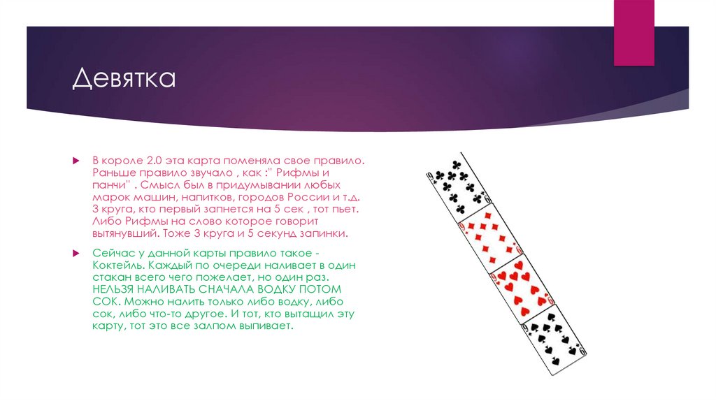 ДевяткаВ короле 2.0 эта карта поменяла свое правило.