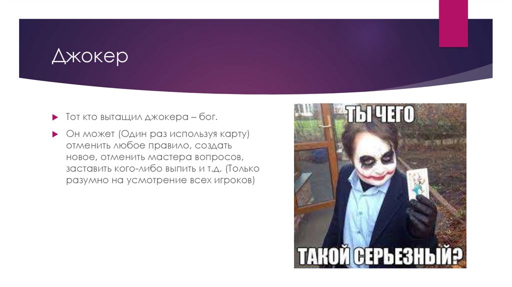 ДжокерТот кто вытащил джокера – бог.