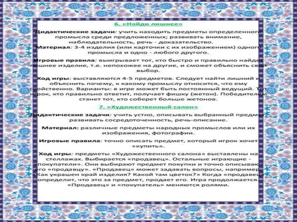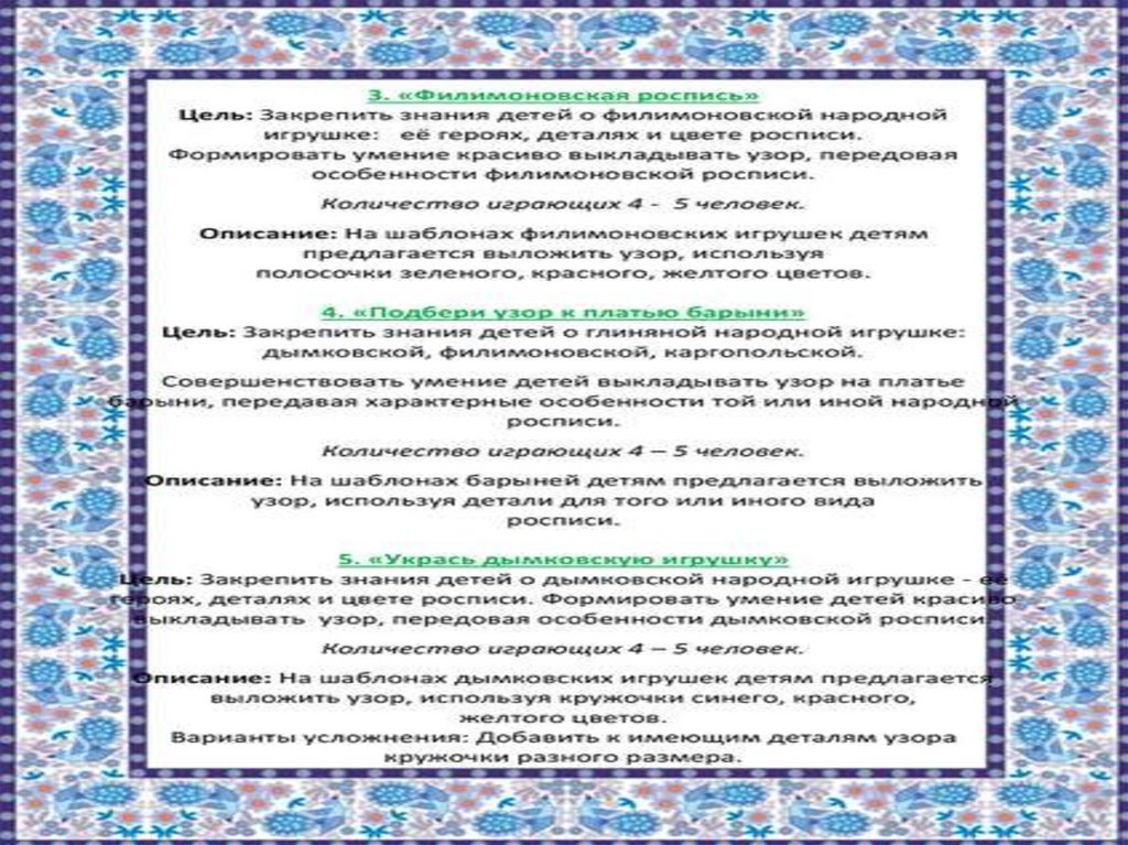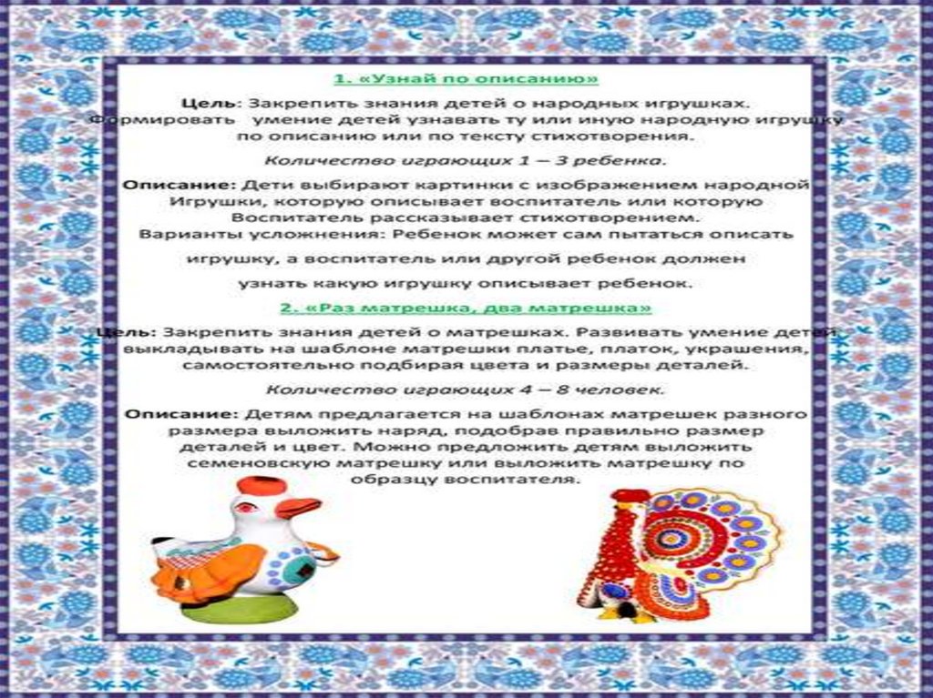 Картотека дидактических игр по народному творчеству