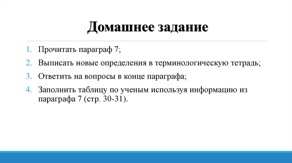 Домашнее задание1. Прочитать параграф 7;