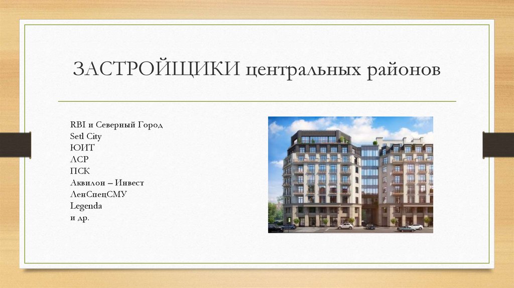 ЗАСТРОЙЩИКИ центральных районовRBI и Северный Город