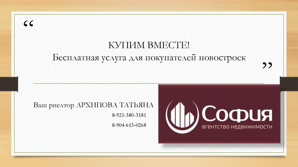 Ваш риелтор АРХИПОВА ТАТЬЯНА