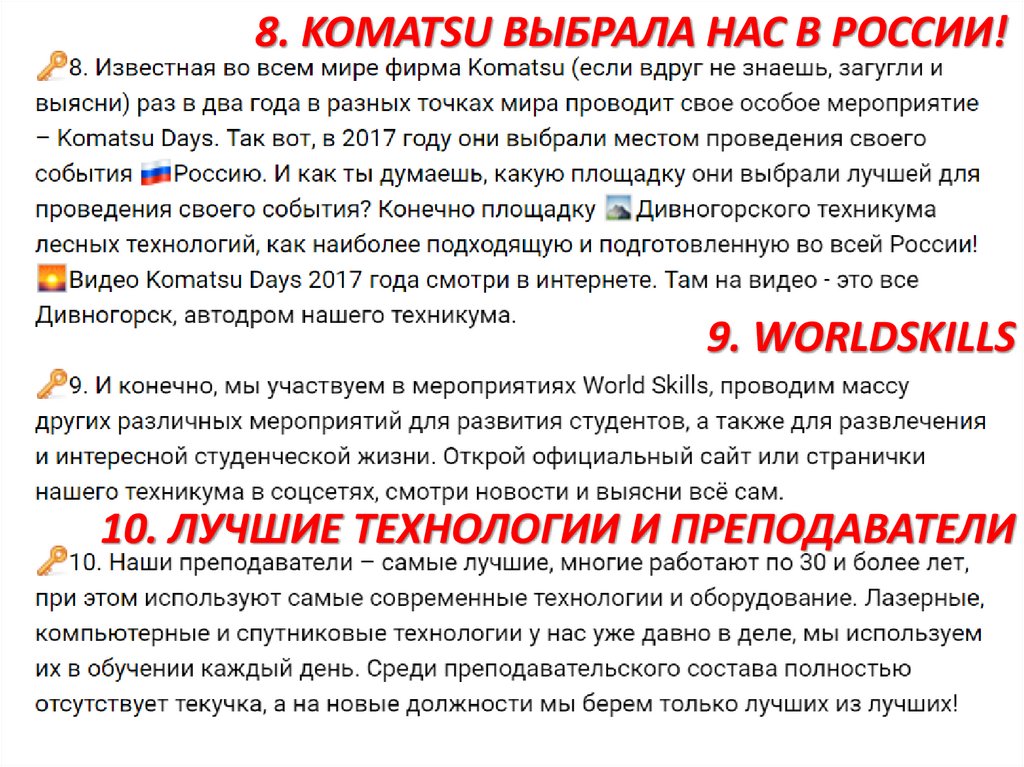 5. К НАМ ЕДУТ ПОСТУПАТЬ ДАЖЕ ИЗ ПЕТЕРБУРГА!6. МЫ ЛУЧШИЙ ССУЗ РФ!
