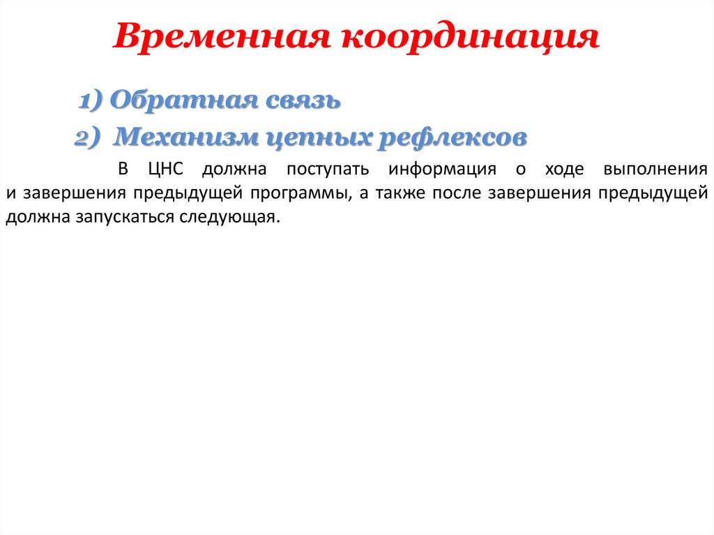 Временная координация1) Обратная связь