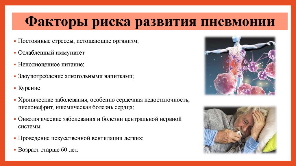 Факторы риска развития пневмонииПостоянные стрессы, истощающие организм;