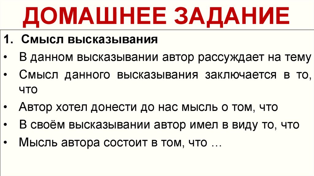 ДОМАШНЕЕ ЗАДАНИЕ1. Смысл высказывания
