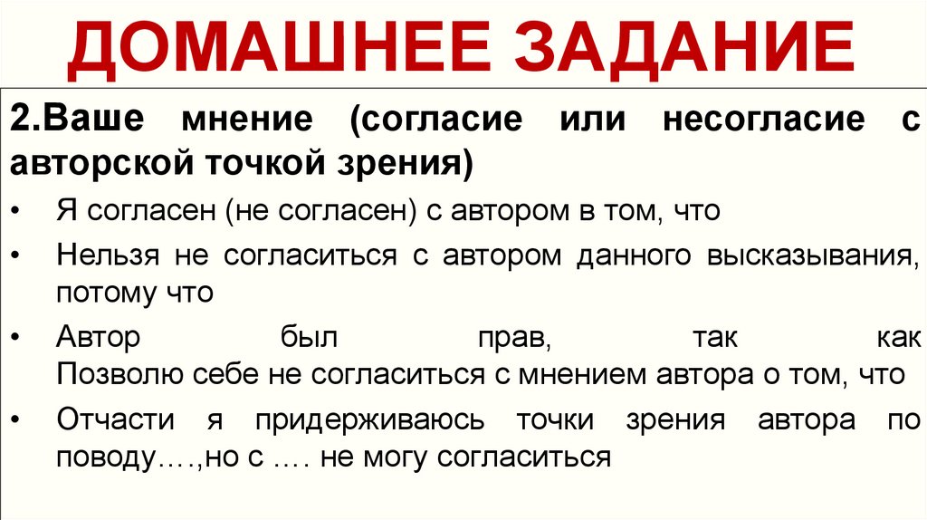 ДОМАШНЕЕ ЗАДАНИЕ2.Ваше мнение (согласие или несогласие с