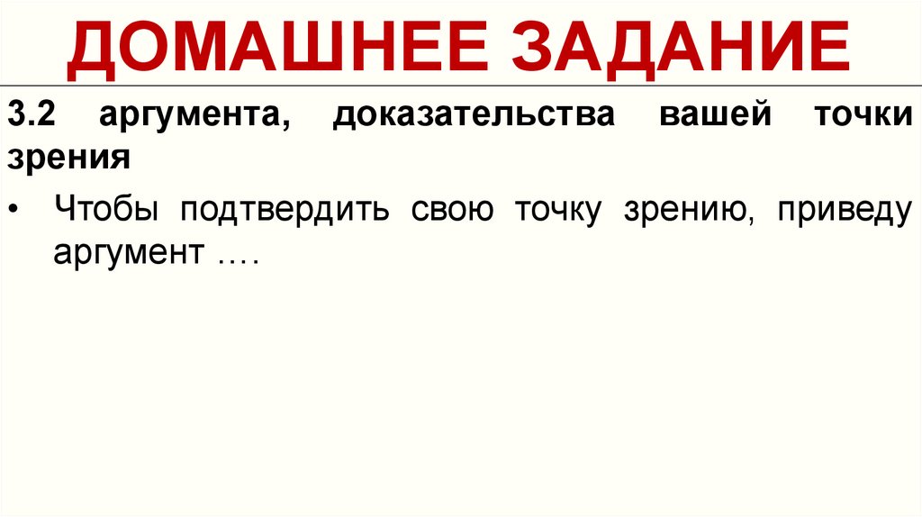 ДОМАШНЕЕ ЗАДАНИЕ3.2 аргумента, доказательства вашей точки