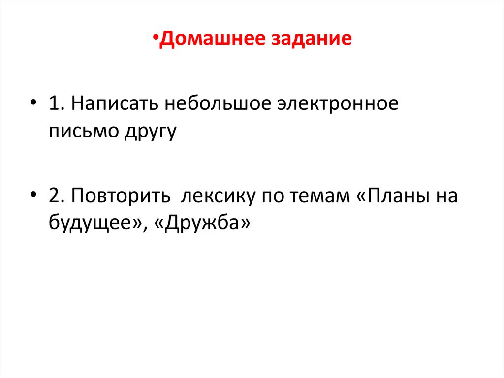 • 2. Повторить лексику по темам «Планы на