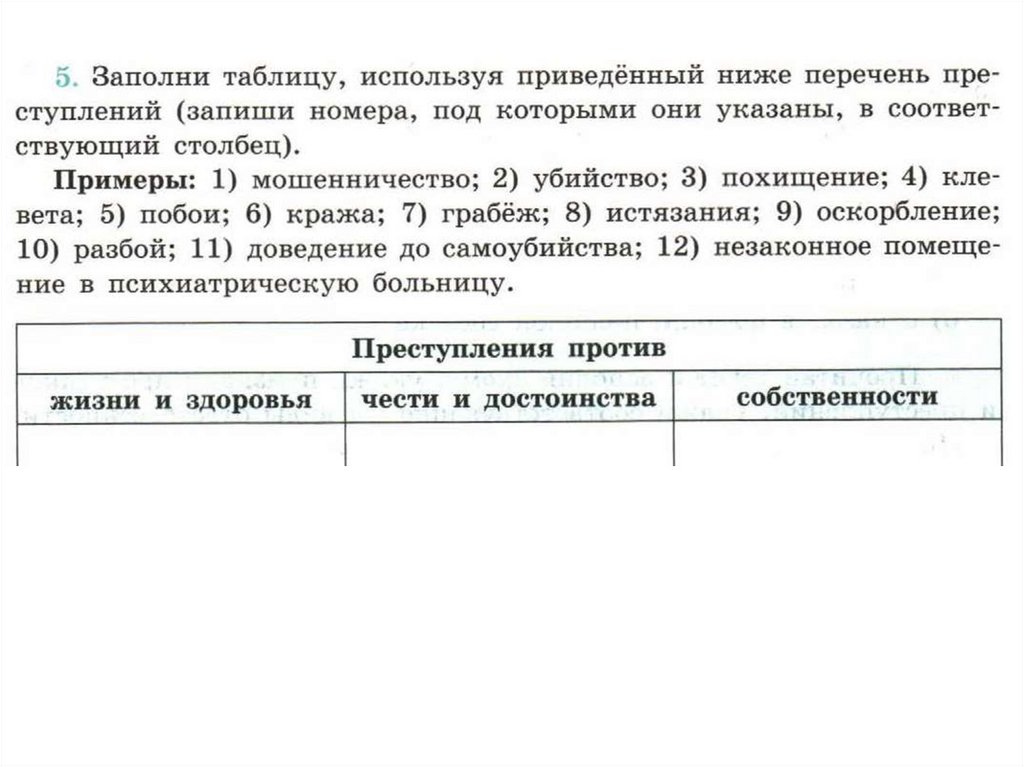 Социальные нормы. Виды правонарушений. Задания
