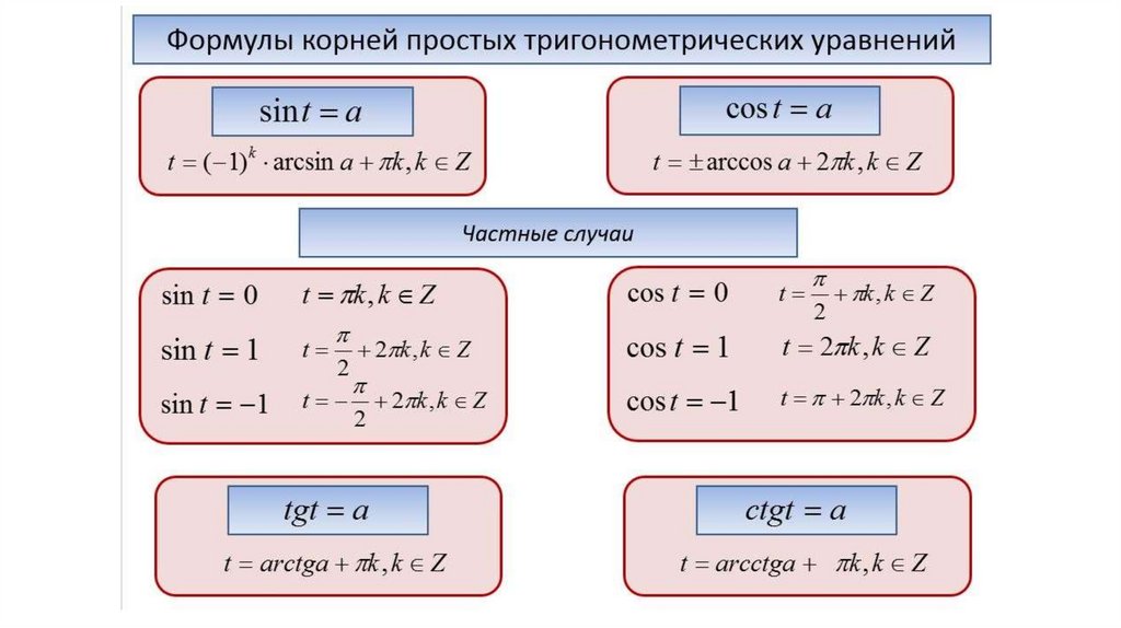 Простейшие тригонометрические уравнения. Решение тригонометрических уравнений