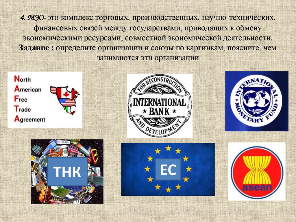 Задание : определите организации и союзы по картинкам, поясните, чем
