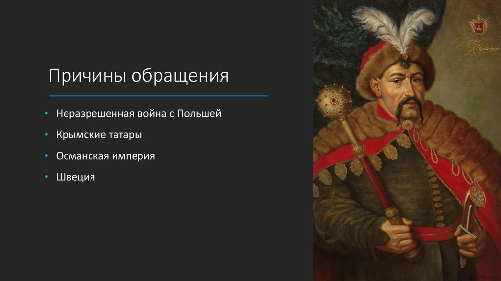 Причины обращения• Неразрешенная война с Польшей