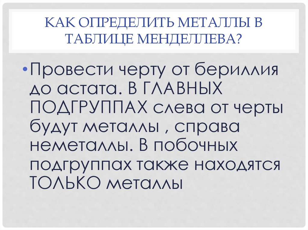 КАК ОПРЕДЕЛИТЬ МЕТАЛЛЫ ВТАБЛИЦЕ МЕНДЕЛЛЕВА?