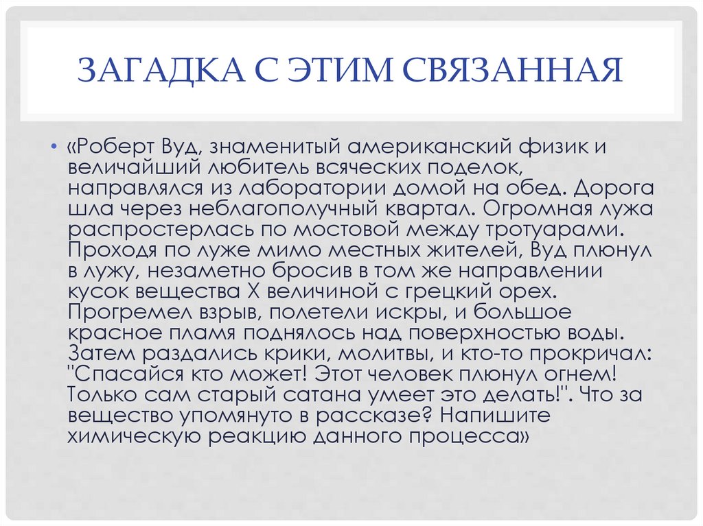 ЗАГАДКА С ЭТИМ СВЯЗАННАЯ• «Роберт Вуд, знаменитый американский физик и