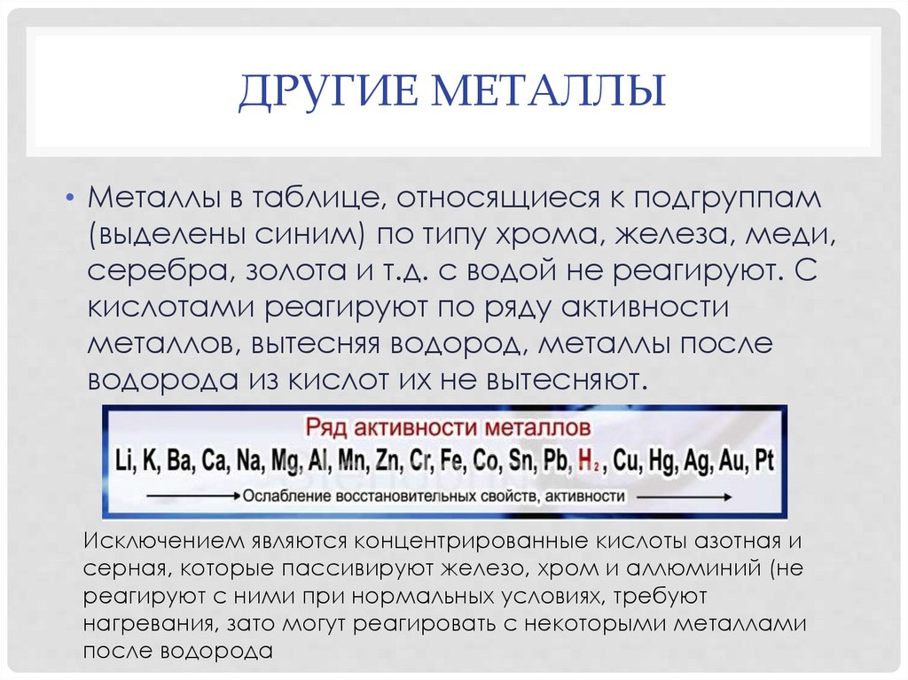 ДРУГИЕ МЕТАЛЛЫ• Металлы в таблице, относящиеся к подгруппам
