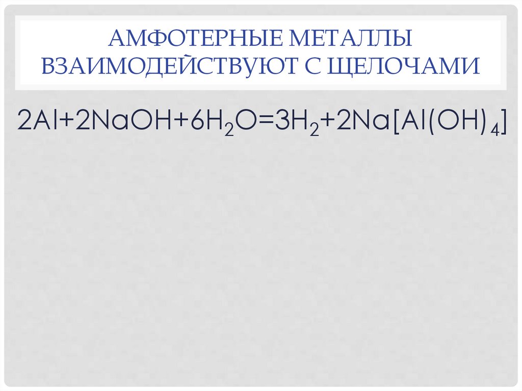 АМФОТЕРНЫЕ МЕТАЛЛЫВЗАИМОДЕЙСТВУЮТ С ЩЕЛОЧАМИ