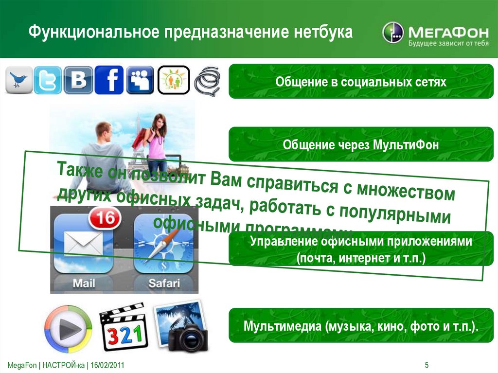 Функциональное предназначение нетбукаОбщение в социальных сетях
