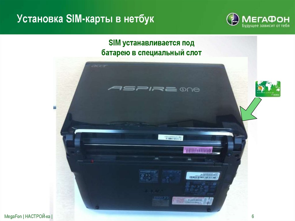 Установка SIM-карты в нетбукSIM устанавливается под