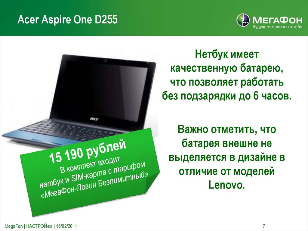 Нетбук Acer Aspire One D255. Компания «МегаФон»