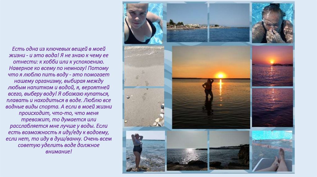 Есть одна из ключевых вещей в моейжизни - и это вода! Я не знаю к чему ее