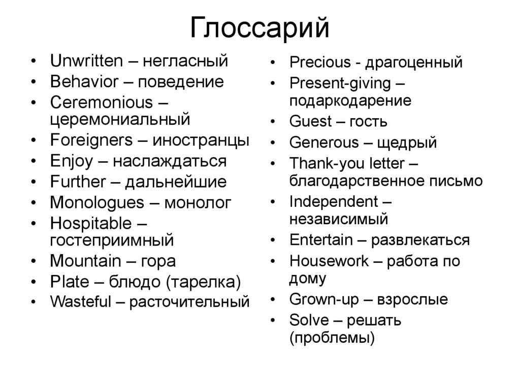 • Unwritten – негласный• Behavior – поведение