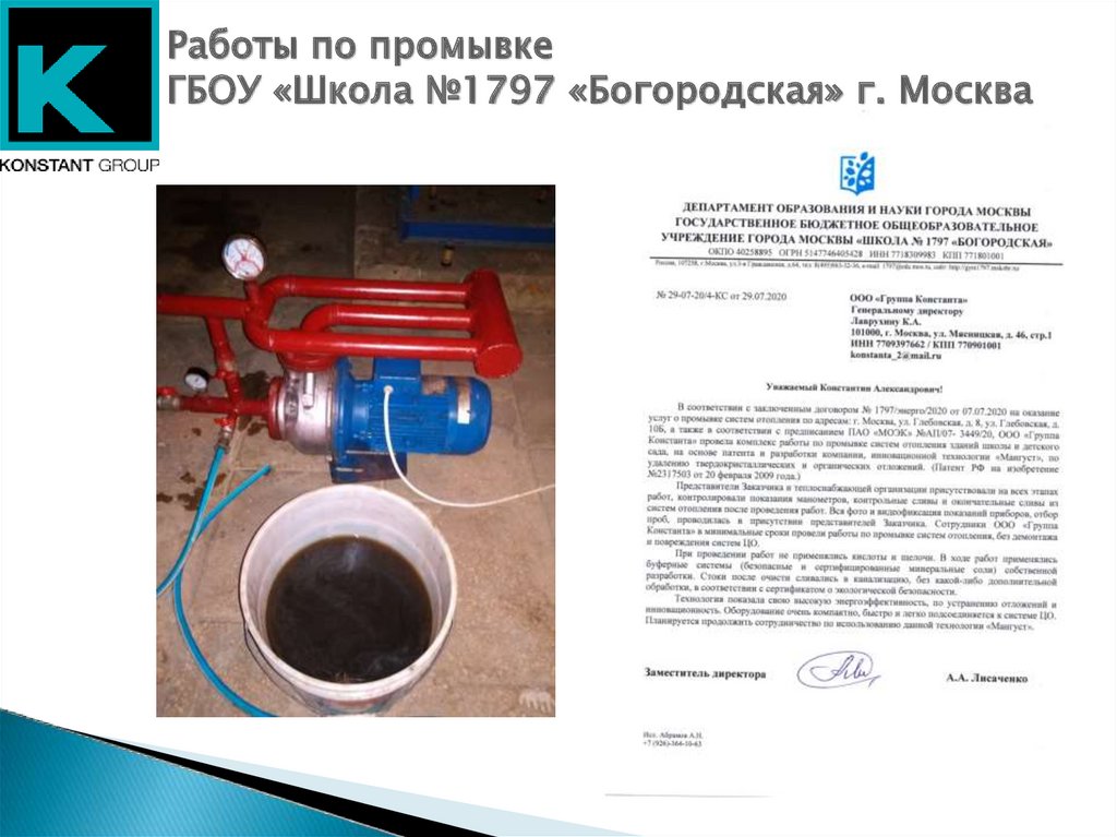 Работы по промывкеГБОУ «Школа №1797 «Богородская» г. Москва