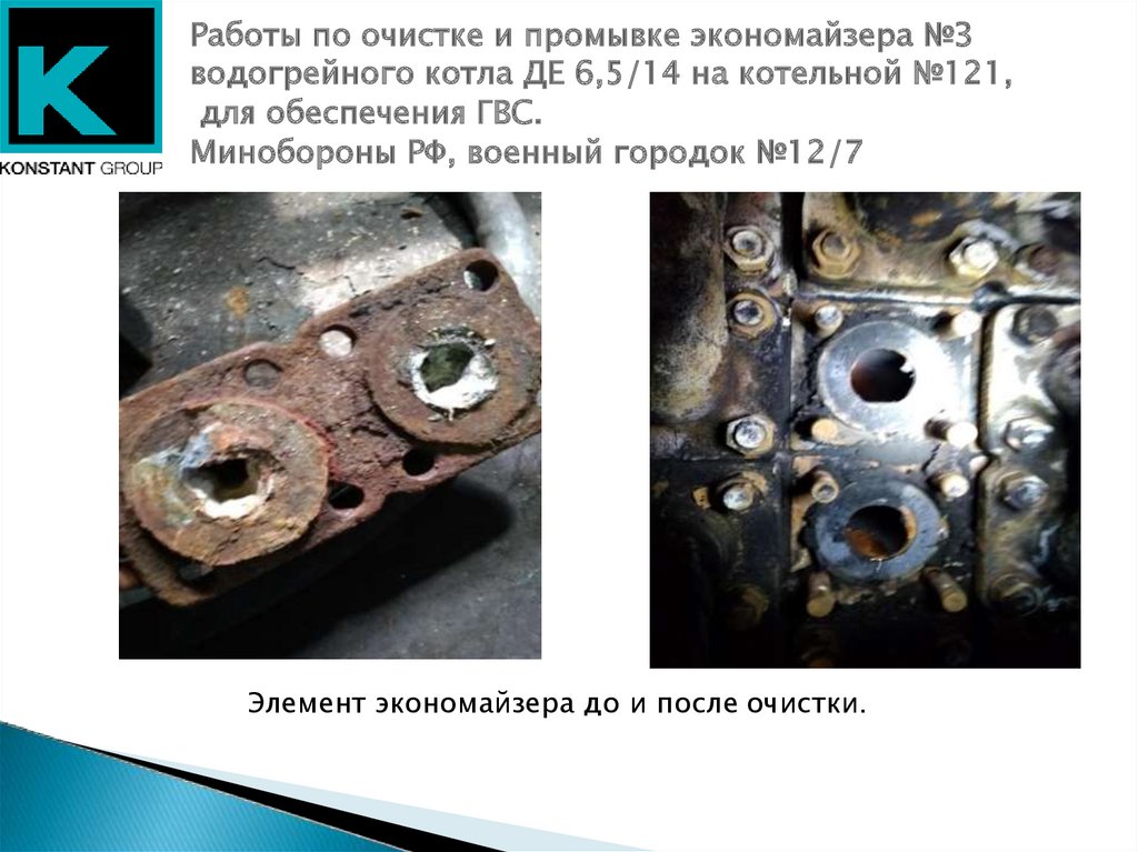 Работы по очистке и промывке экономайзера №3водогрейного котла ДЕ 6,5/14 на котельной №121,